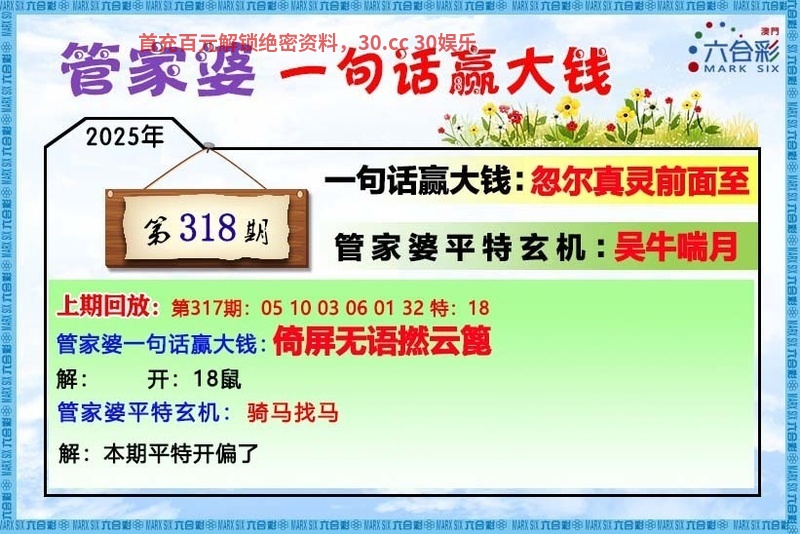 | 317期:九肖 | 羊猴马蛇龙鼠狗猪牛 | 结果:鼠18 |